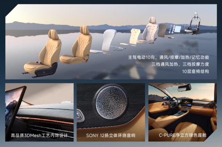 内饰方面,艾瑞泽8 PRO 2.0T同样不遗余力地打造豪华舒适的驾乘环境。主副驾驶席均配备了采用10层舒适结构的“舒云”座椅,集成通风、加热及按摩功能,为用户提供头等舱般的尊享感受。同时,由专业“金耳朵”团队精心调校的SONY品牌高保真音响系统,搭配256色智能律动氛围灯,共同营造出沉浸式的视听盛宴。