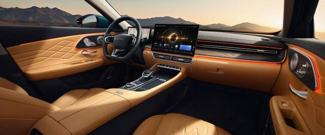内饰方面,新车延续了此前1.6T车型上的内饰设计,使用了10.25英寸的液晶仪表和15.6英寸的悬浮中控屏,并搭载了高通骁龙8155芯片,可支持HUAWEI HiCar/Carlink以及苹果CarPlay互联,同时还内置全新的高德地图导航。在配置方面,新车会配备540°全景影像、50W的手机无线充电、全景天窗、前排座椅加热、通风和按摩功能;此外还会搭载L2+级别的驾驶辅助功能。